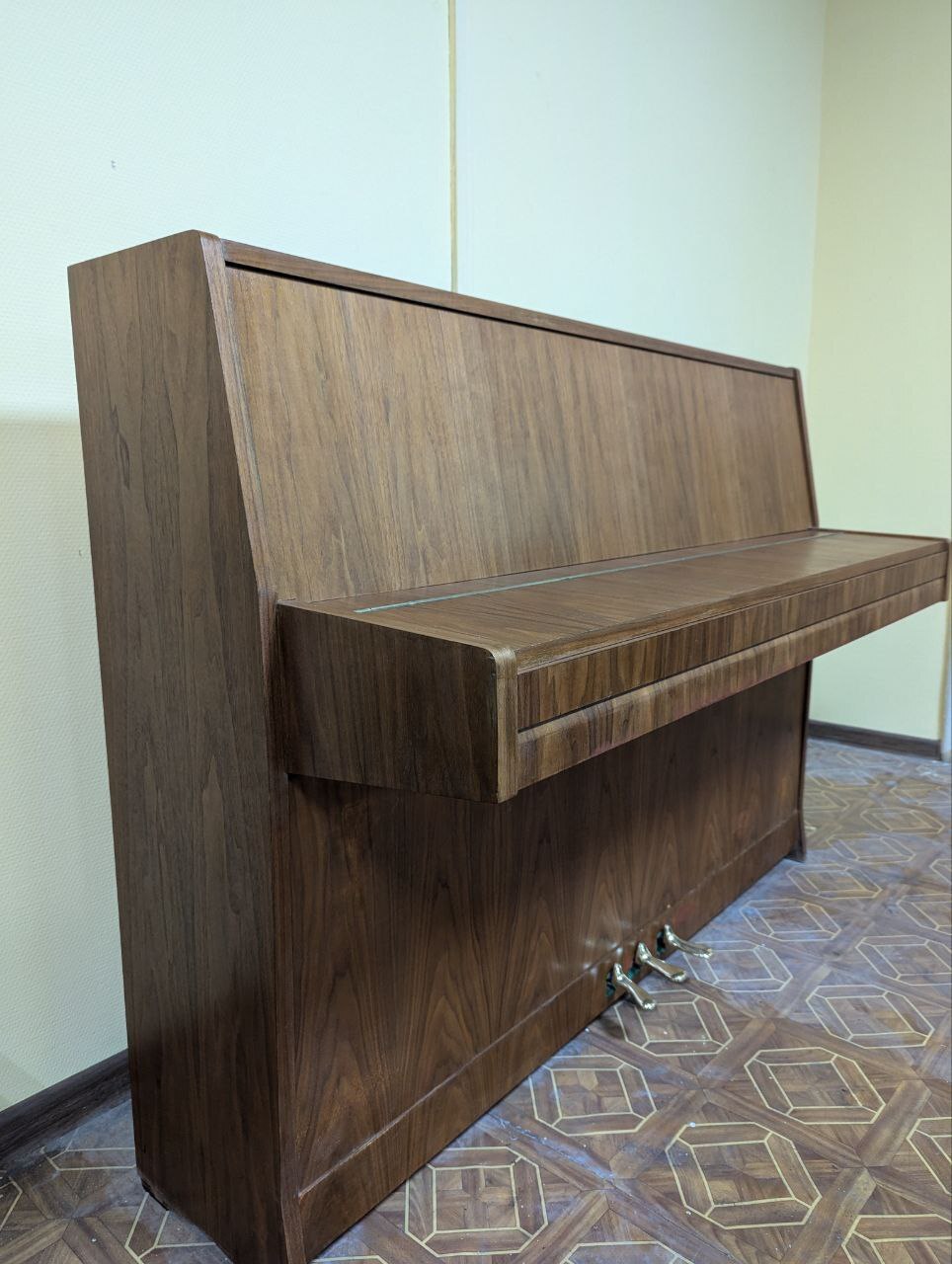 Пианино после покраски шеллаком. Шеллак - это экологически чистый лак, который вырабатывается насекомыми из природной смолы. При отделке шеллак выводит шпон в теплый матовый цвет, который выигрышно будет смотреться в любом интерьере. Пианино после следующих работ:покраска пианино, настройка с поднятием строя,регулировка механики, ремонт неисправных узлов, интонировка.